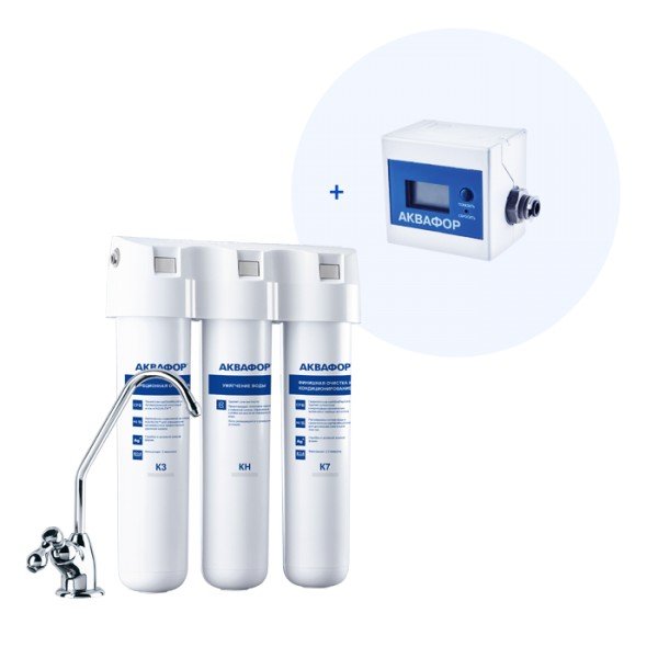 Обратноосмотические фильтры используются для абсолютной защиты от накипи, т.к. полностью устраняют соли жесткости из воды.нетЧисло ступеней очисткиКартриджи последовательно очищают воду и от видимых примесей, и от растворенных. Первый картридж задерживает более крупные частицы, а каждый последующий - более мелкие. Чем больше ступеней - тем лучше фильтр очистит воду: поймает более мелкие видимые частицы ржавчины, песка и ила, успеет захватить из воды максимум растворенных примесей - хлора, нитратов, тяжелых металлов и других.3МинерализацияПроисходит после финишной очистки воды. Необходима прежде всего в фильтре обратного осмоса, поскольку такой фильтр полностью устраняет из воды все примеси, в том числе минералы. Минералы добавляются в оптимальной концентрации - для пользы и привычного вкуса воды.нетПостфильтрацияФинальный этап очистки воды: картриджи постфильтрации удаляют самые мелкие механические частицы и кондиционируют воду, придавая ей более приятный вкус.нетНакопительная емкостьОбычно нужна в фильтрах обратного осмоса. Глубокая фильтрация требует времени. Чтобы Вам не приходилось ждать, пока вода наберется в чайник или кастрюлю, почти во всех моделях используется накопительный бак для чистой воды или другая емкость. В стандартном фильтре обратного осмоса под мойку воды в баке достаточно для семьи из 5-6 человек.нетФильтрующий модуль в комплектедаОтдельный крандаДавление в водопроводе не более, атмМаксимальное давление воды на входе в систему, при котором возможна стабильная работа фильтра.6,5Ширина, смОбратите внимание на габариты фильтра, и измерьте, сколько свободного пространства в предполагаемом месте установки.26,0Глубина, смОбратите внимание на габариты фильтра, и измерьте, сколько свободного пространства в предполагаемом месте установки.9,0Защита корпуса от гидроударовдаИсходная водаЖесткая вода – вода с избытком минеральных солей. От нее появляется накипь в чайнике, известковый налет на сантехнике и разводы на посуде. Мягкая вода – та, в которой мало минеральных солей. Нет накипи в чайнике и разводов на посуде. Фильтры для мутной воды и фильтры от ржавчины, как правило, имеют несколько стадий очистки и дополнительный полипропиленовый картридж. Он задерживает механические частицы ила, песка и ржавчины и защищает картриджи более глубокой очистки.жёсткаяУстраняет мутностьМутность водопроводной воды может говорить о том, что в ней много мелких механических частиц. Важно, чтобы в фильтре был установлен дополнительные картридж механической предфильтрации (полипропиленовый) - он продлит жизнь остальным картриджам более тонкой очистки.нетУстраняет ржавчину, бурый осадокЛюбой фильтр под мойку удалит из воды крупные и мелкие частицы ржавчины. Некоторые фильтры имеют повышенный ресурс по железу: они дольше служат в такой воде, поскольку лучше подходят для удаления из воды железа и механических частиц ржавчины.нетЗащита от бактерийВсе проточные фильтры в той или иной степени защищают от бактерий. Например, добавление серебра препятствует их размножению. Это стандартная степень защиты. Если в семье есть дети, пожилые люди или аллергики, воду рекомендуется обеззараживать, то есть полностью удалять микроорганизмы. Повышенную защиту от бактерий дают фильтры с половолоконной мембраной. Это пучок тр