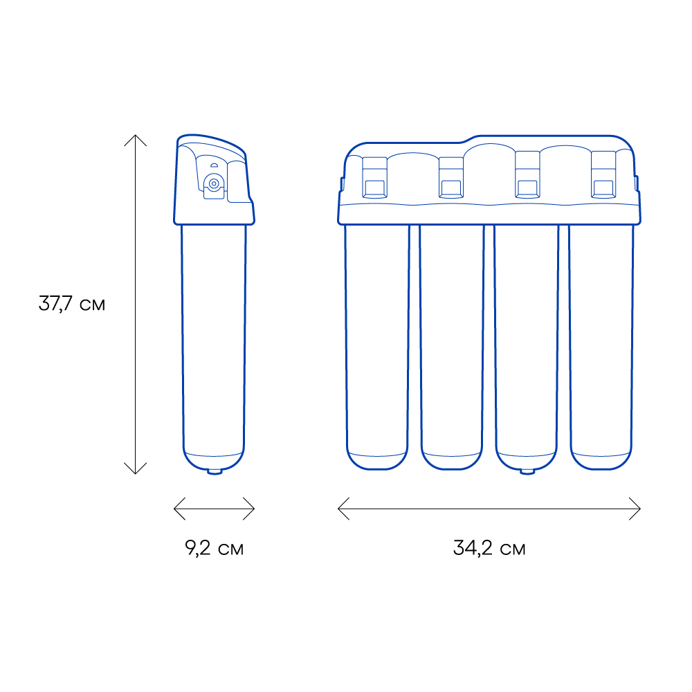Обратноосмотические фильтры используются для абсолютной защиты от накипи, т.к. полностью устраняют соли жесткости из воды.нетЧисло ступеней очисткиКартриджи последовательно очищают воду и от видимых примесей, и от растворенных. Первый картридж задерживает более крупные частицы, а каждый последующий - более мелкие. Чем больше ступеней - тем лучше фильтр очистит воду: поймает более мелкие видимые частицы ржавчины, песка и ила, успеет захватить из воды максимум растворенных примесей - хлора, нитратов, тяжелых металлов и других.5МинерализацияПроисходит после финишной очистки воды. Необходима прежде всего в фильтре обратного осмоса, поскольку такой фильтр полностью устраняет из воды все примеси, в том числе минералы. Минералы добавляются в оптимальной концентрации - для пользы и привычного вкуса воды.нетПостфильтрацияФинальный этап очистки воды: картриджи постфильтрации удаляют самые мелкие механические частицы и кондиционируют воду, придавая ей более приятный вкус.нетНакопительная емкостьОбычно нужна в фильтрах обратного осмоса. Глубокая фильтрация требует времени. Чтобы Вам не приходилось ждать, пока вода наберется в чайник или кастрюлю, почти во всех моделях используется накопительный бак для чистой воды или другая емкость. В стандартном фильтре обратного осмоса под мойку воды в баке достаточно для семьи из 5-6 человек.нетФильтрующий модуль в комплектедаОтдельный крандаДавление в водопроводе не более, атмМаксимальное давление воды на входе в систему, при котором возможна стабильная работа фильтра.6,5Ширина, смОбратите внимание на габариты фильтра, и измерьте, сколько свободного пространства в предполагаемом месте установки.37,7Глубина, смОбратите внимание на габариты фильтра, и измерьте, сколько свободного пространства в предполагаемом месте установки.9,2Защита корпуса от гидроударовдаИсходная водаЖесткая вода – вода с избытком минеральных солей. От нее появляется накипь в чайнике, известковый налет на сантехнике и разводы на посуде. Мягкая вода – та, в которой мало минеральных солей. Нет накипи в чайнике и разводов на посуде. Фильтры для мутной воды и фильтры от ржавчины, как правило, имеют несколько стадий очистки и дополнительный полипропиленовый картридж. Он задерживает механические частицы ила, песка и ржавчины и защищает картриджи более глубокой очистки.мягкаяУстраняет мутностьМутность водопроводной воды может говорить о том, что в ней много мелких механических частиц. Важно, чтобы в фильтре был установлен дополнительные картридж механической предфильтрации (полипропиленовый) - он продлит жизнь остальным картриджам более тонкой очистки.даУстраняет ржавчину, бурый осадокЛюбой фильтр под мойку удалит из воды крупные и мелкие частицы ржавчины. Некоторые фильтры имеют повышенный ресурс по железу: они дольше служат в такой воде, поскольку лучше подходят для удаления из воды железа и механических частиц ржавчины.даЗащита от бактерийВсе проточные фильтры в той или иной степени защищают от бактерий. Например, добавление серебра препятствует их размножению. Это стандартная степень защиты. Если в семье есть дети, пожилые люди или аллергики, воду рекомендуется обеззараживать, то есть полностью удалять микроорганизмы. Повышенную защиту от бактерий дают фильтры с половолоконной мембраной. Это пучок трубо